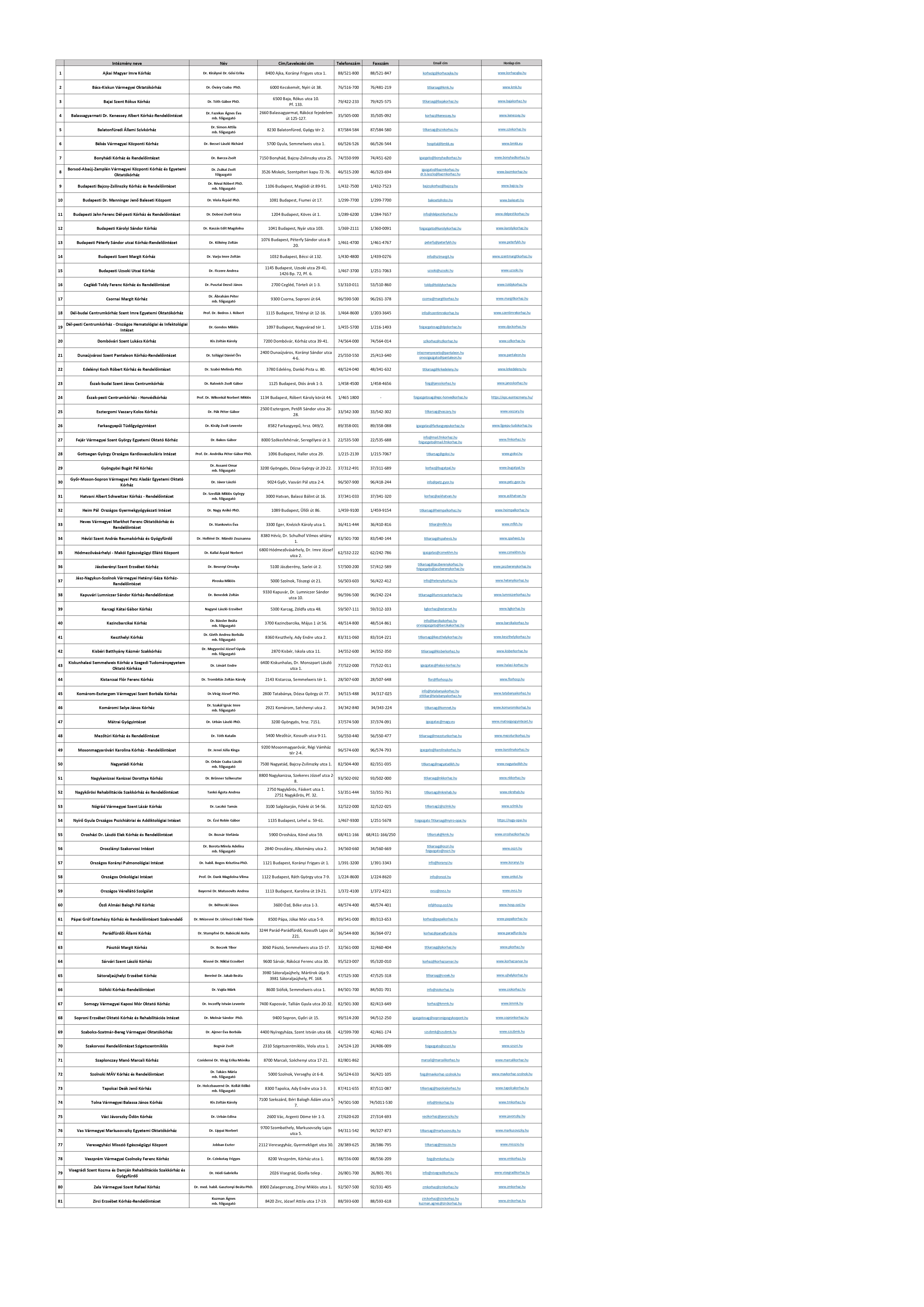 | 18. | A közfeladatot ellátó szervre vonatkozó különös és egyedi közzétételi lista | Nincs a kategóriába tartozó jogszabály alapján közzéteendő közérdekű adat | A változásokat követően azonnal | Az előző állapot törlendő | Jogi Igazgatóság |
